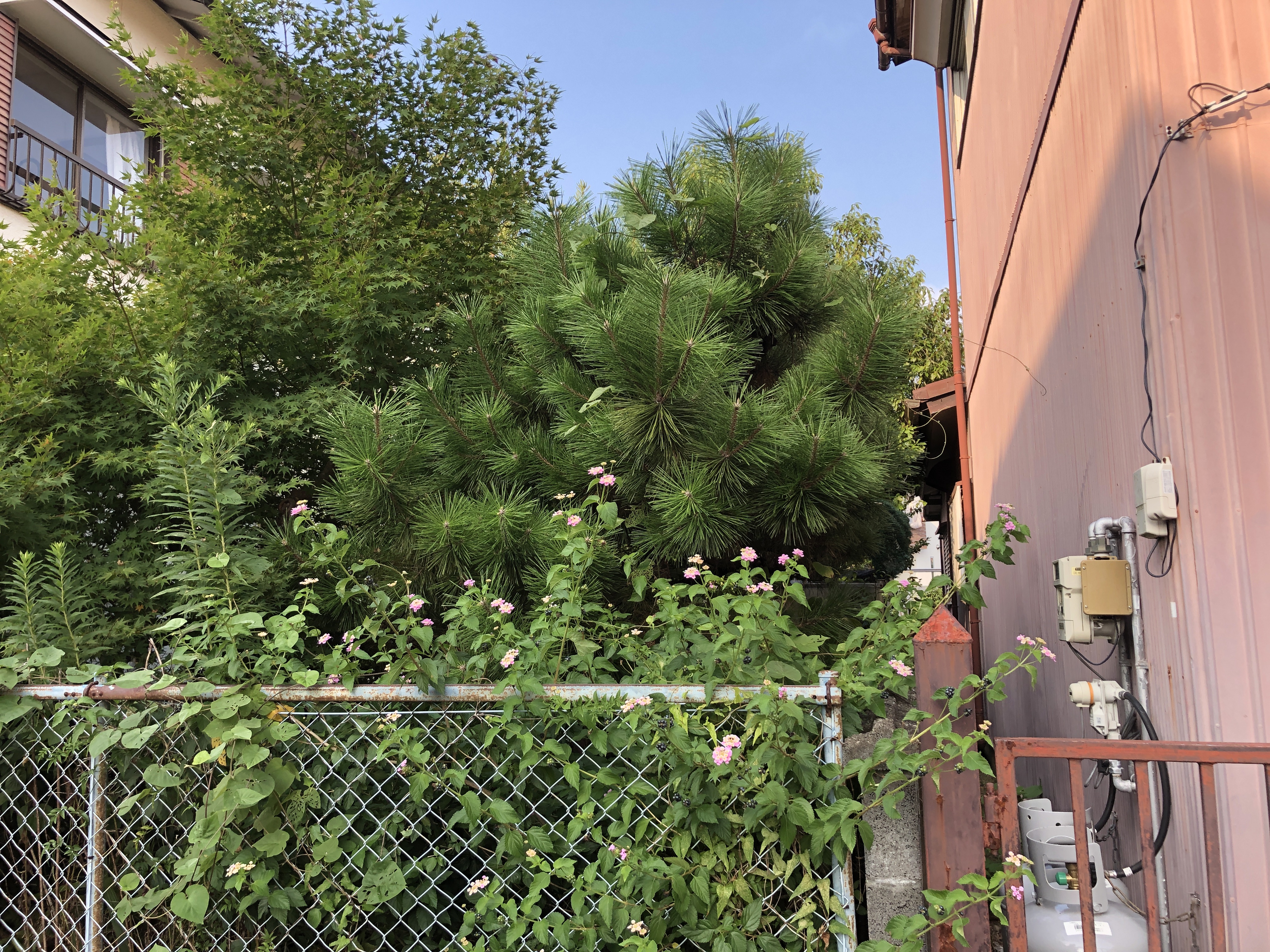雑草や伸びた枝が敷地に侵入。